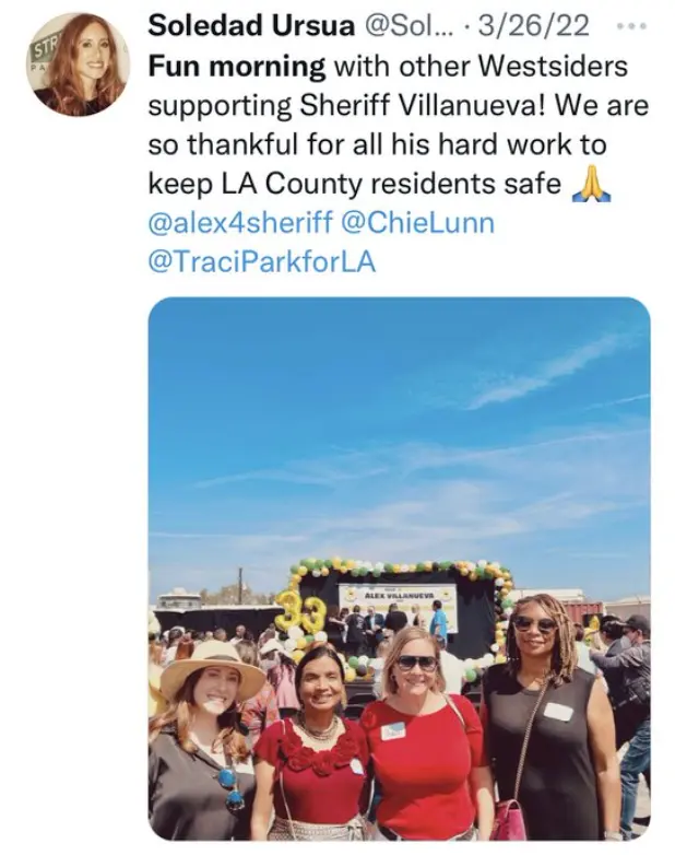 Soledad Ursúa was an early and enthusiastic supporter of Traci Park’s campaign to unseat progressive Councilmember Mike Bonin. Park stepped into the race in the wake of a failed right-wing-led recall effort against Bonin—a campaign that Ursúa helped spearhead. She later celebrated Park’s entry into the race as a turning point for Venice, calling Park’s campaign “a better political track” and lauding her for “actually caring about the community” when “nobody else would.”
